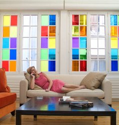 Our coloured transparent window film is an attractive form of window covering which gives you the sophisticated look of traditional stained glass without the associated high costs and installation problems.