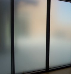 Ideal for bathrooms, doors, offices and street facing windows, plain frosted film gives different degrees of privacy and offers a simple and hygienic alternative to net curtains or blindsIdeal for bathrooms, doors, offices and street facing windows, Brume frosted film gives different degrees of privacy and offers a simple and hygienic alternative to net curtains or blinds. It gives the appearance of stylish etched glass and is easy to trim to size and apply.